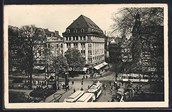 AK Düsseldorf, Corneliusplatz mit Strassenbahn, Blick vom Breidenbacher Hof