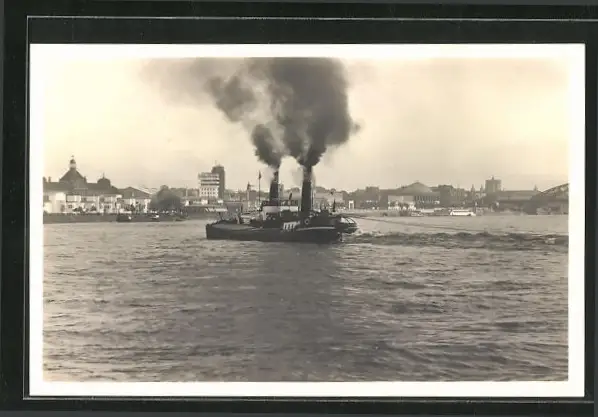 AK Düsseldorf, Die Rheinfront der Goselei, Dampfer