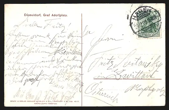 alte Ansichtskarte, gelaufen 1908, Stempeldurchbruch li. oben, guter Zustand