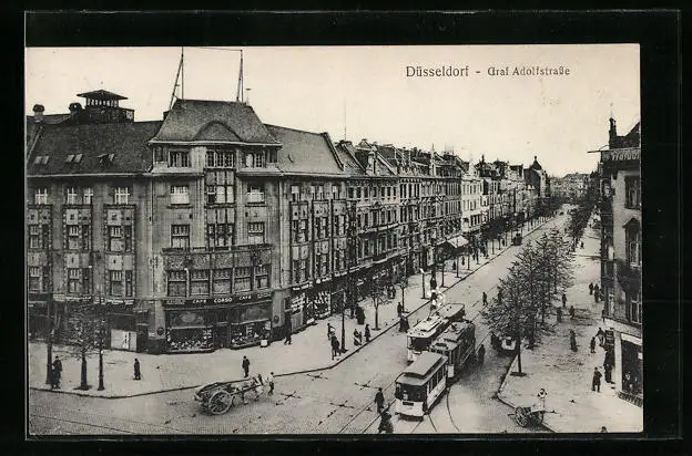 AK Düsseldorf, Graf Adolfstrasse mit Strassenbahn