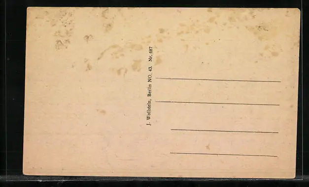 Personenbezogene Daten auf der Rückseite der Karte wurden durch blauen Textmarker unkenntlich gemacht. Die blauen Stellen sind auf die Vorderseite durchgeweicht und wirken sich negativ auf das Postkartenfoto aus