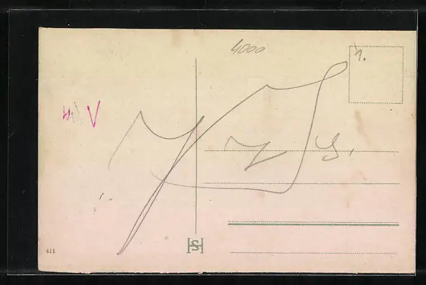 Personenbezogene Daten auf der Rückseite der Karte wurden durch blauen Textmarker unkenntlich gemacht. Die blauen Stellen sind auf die Vorderseite durchgeweicht und wirken sich negativ auf das Postkartenfoto aus
