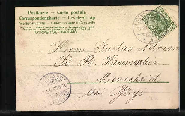 alte Ansichtskarte, gelaufen 1905, Eckknick li. oben, guter Zustand