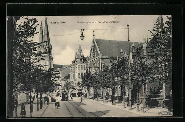 AK Düsseldorf, Marienkirche und Strassenbahn