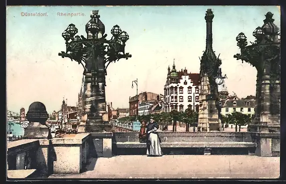 AK Düsseldorf, Mutter mit Kind am Rhein