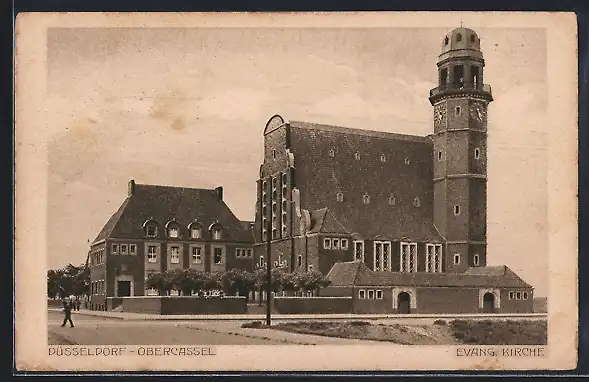 AK Düsseldorf-Obercassel, Evang. Kirche mit Vorplatz