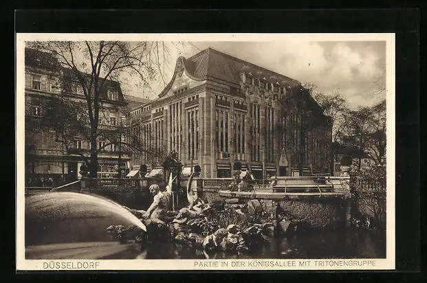 AK Düsseldorf, Partie in der Königsallee mit Tritonengruppe