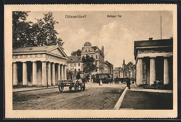AK Düsseldorf, Ratinger Tor mit Strassenbahn