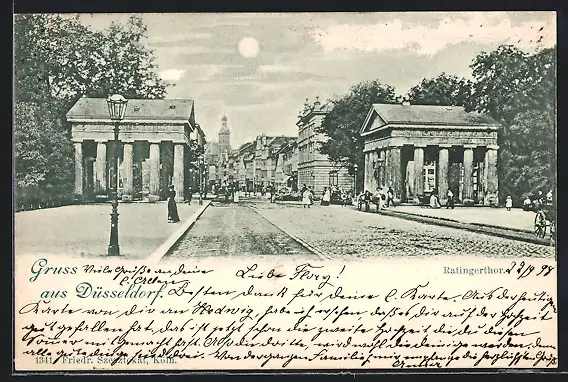 AK Düsseldorf, Ratingerthor mit Passanten