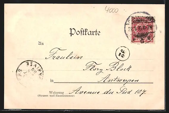 alte Ansichtskarte, gelaufen 1899, guter Zustand