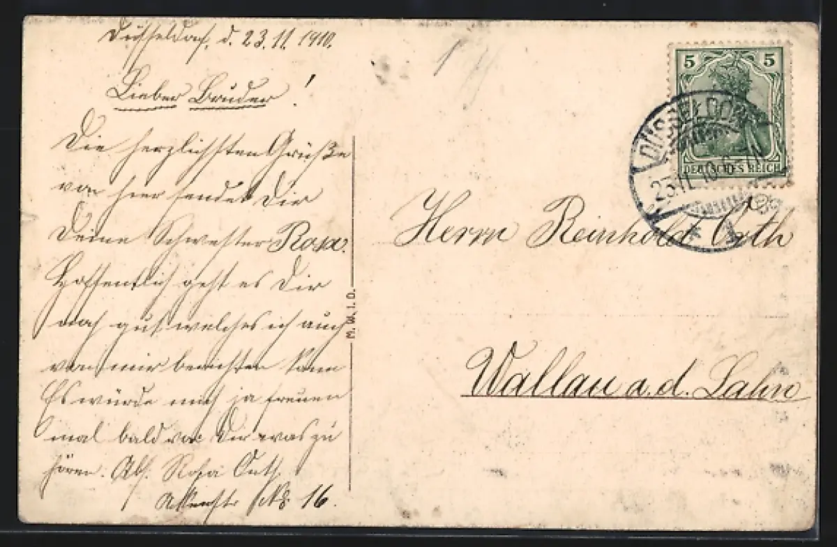 gelaufen 1910, Eckknick oben links, guter Zustand