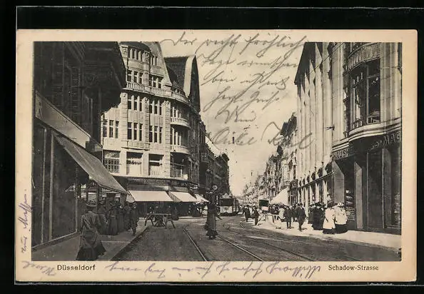 AK Düsseldorf, Schadow-Strasse mit Strassenbahn