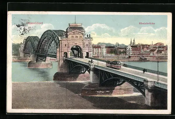 AK Düsseldorf, Strassenbahn auf der Rheinbrücke