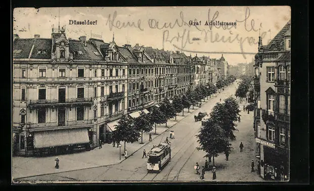 AK Düsseldorf, Strassenbahn in der Graf Adolfstrasse