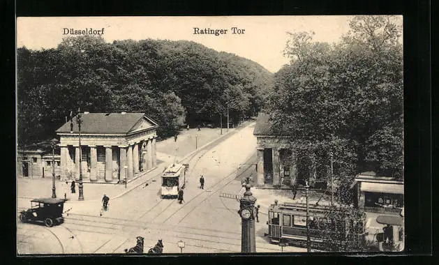 AK Düsseldorf, Strassenbahn passiert das Ratinger Tor