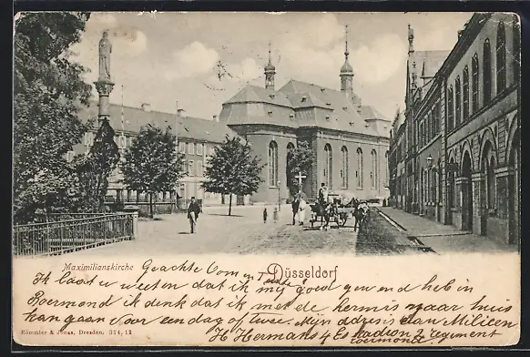 AK Düsseldorf, Strassenpartie mit Maximilianskirche