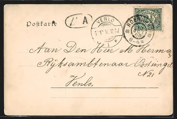 alte Ansichtskarte, gelaufen 1906, Eckknicke re., Kantenschaden oben mittig, guter Zustand
