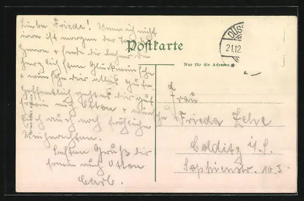 alte Ansichtskarte, gelaufen, Briefmarke entfernt, rückseitig Oberflächenschaden, guter Zustand