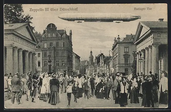 AK Düsseldorf, Zeppelin III über dem Ratinger Tor
