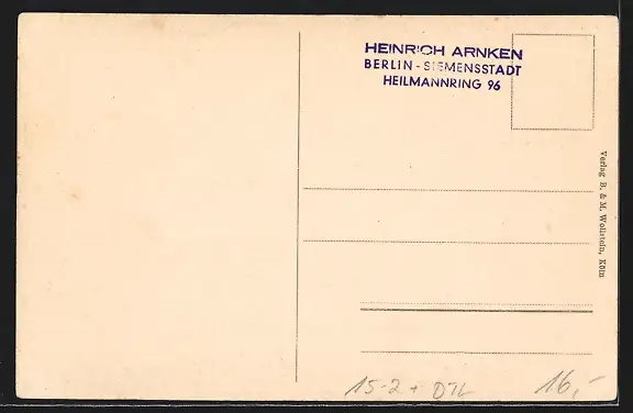 Personenbezogene Daten auf der Rückseite der Karte wurden durch blauen Textmarker unkenntlich gemacht. Die blauen Stellen sind auf die Vorderseite durchgeweicht und wirken sich negativ auf das Postkartenfoto aus