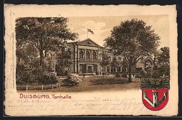 AK Duisburg, Ansicht der Tonhalle, Wappen