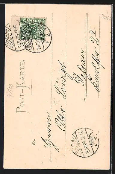 alte Ansichtskarte, gelaufen 1899, Stempelspur, guter Zustand