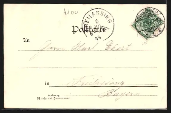 alte Ansichtskarte, gelaufen 1899, Eckknick li. unten, guter Zustand