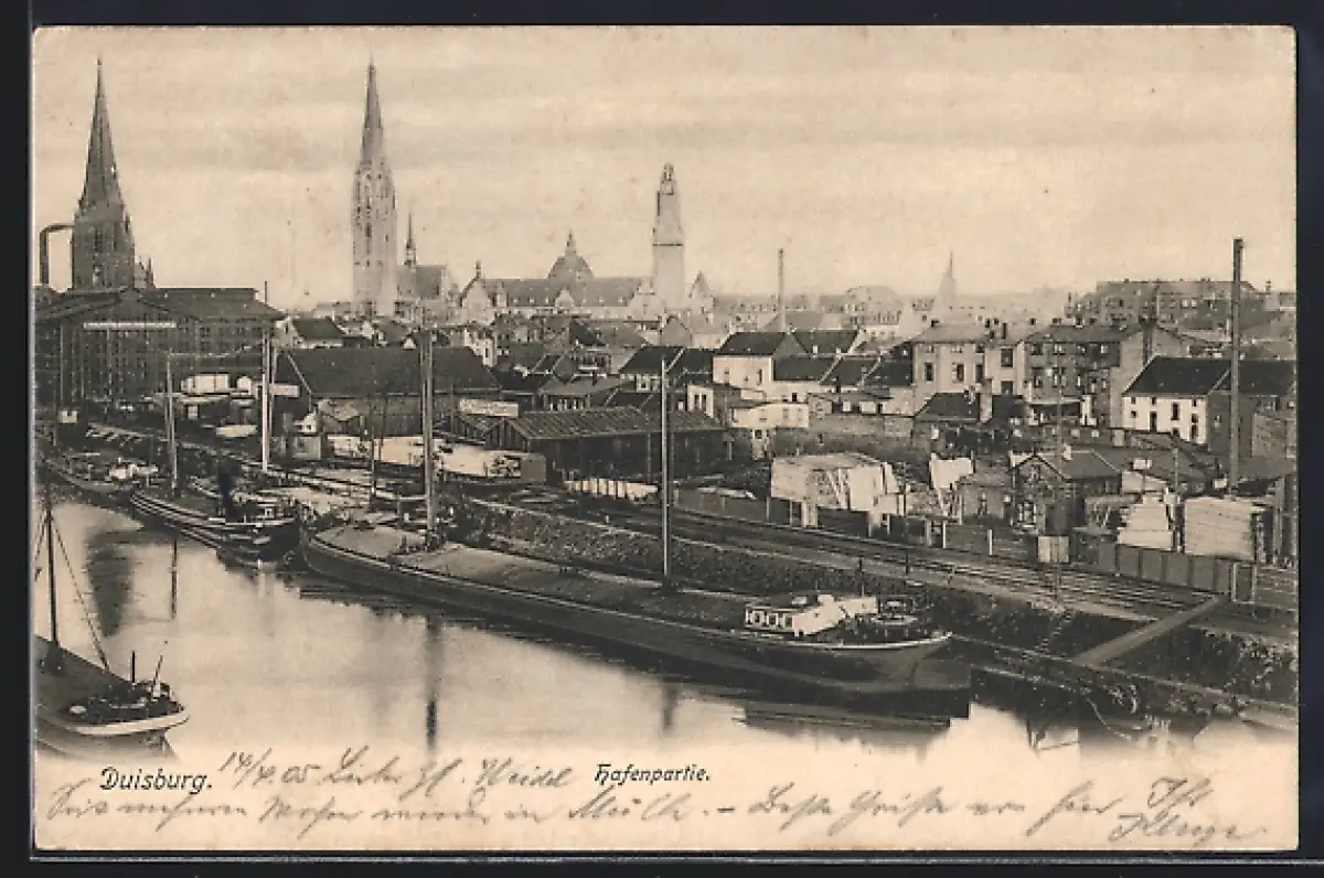 AK Duisburg, Hafenpartie mit Fähren