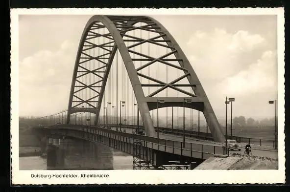 AK Duisburg-Hochfelder, Radfahrer auf der Rheinbrücke
