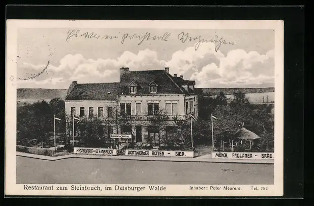AK Duisburg, Restaurant zum Steinbruch mit Strasse