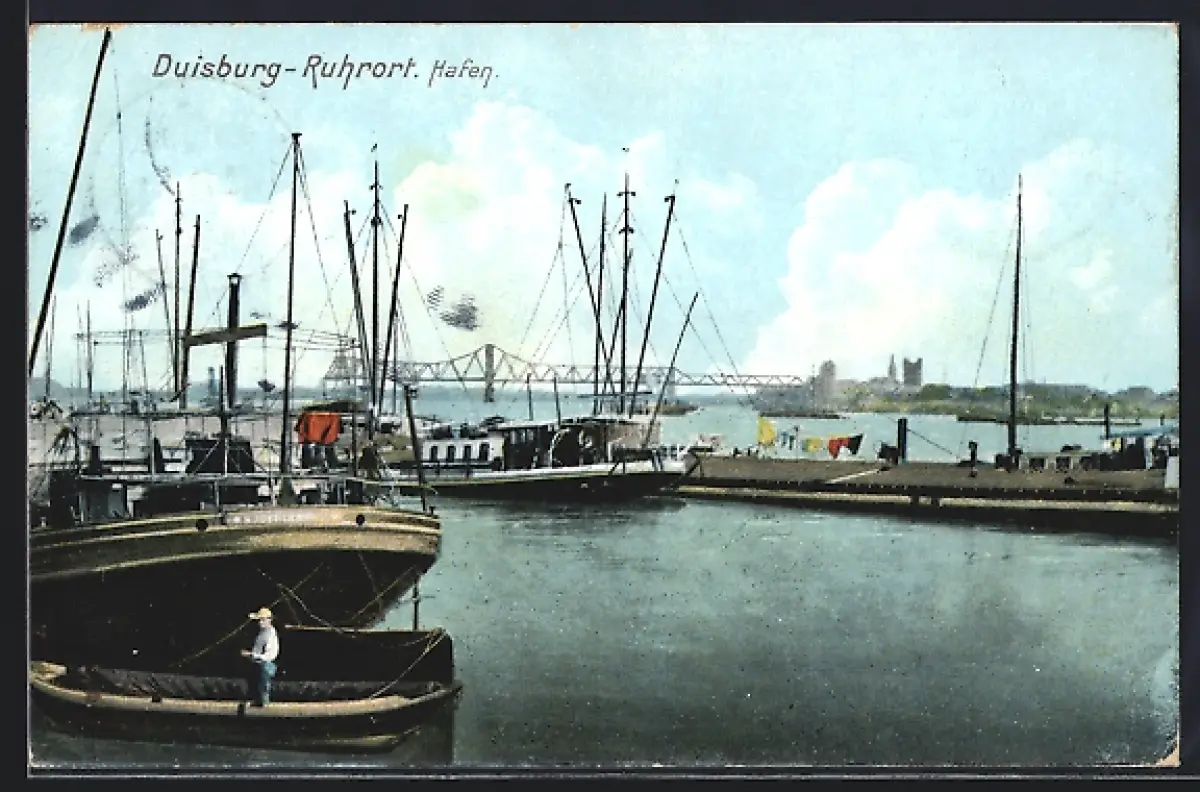 AK Duisburg-Ruhrort, Hafenansicht mit Schiffe