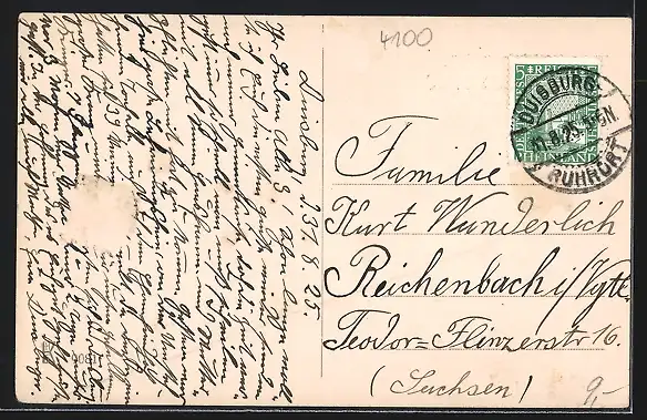 gelaufen 1925, rückseitig Oberflächenschaden, guter Zustand