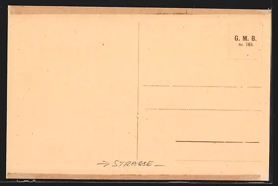 Personenbezogene Daten auf der Rückseite der Karte wurden durch blauen Textmarker unkenntlich gemacht. Die blauen Stellen sind auf die Vorderseite durchgeweicht und wirken sich negativ auf das Postkartenfoto aus