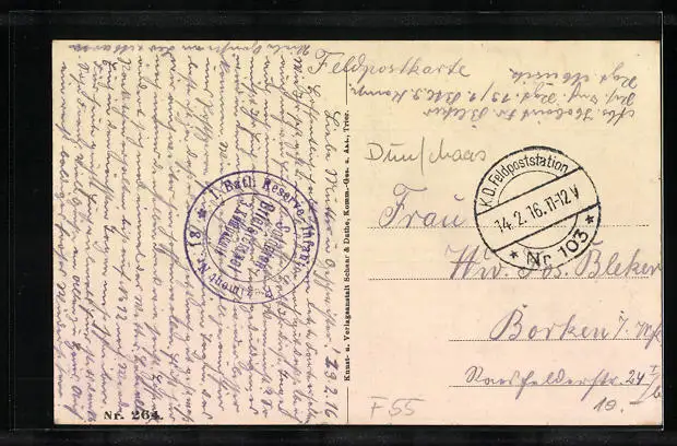 gelaufen als Feldpost 1916, guter Zustand