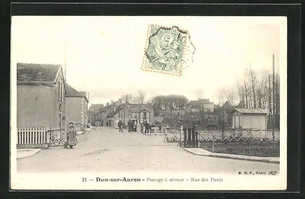AK Dun-sur-Auron, Passage à niveau-Rue des Ponts