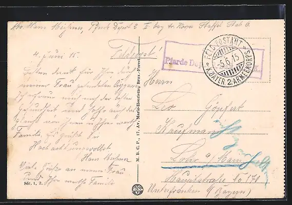 alte Ansichtskarte, gelaufen 1915, Eckknick re. unten, guter Zustand