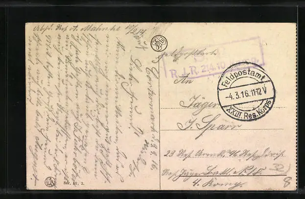 alte Ansichtskarte, gelaufen 1916, Eckknicke li. unten und re. oben, Bugspur li. diagonal, guter Zustand