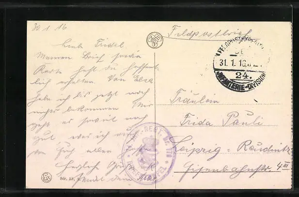alte Ansichtskarte, gelaufen als Feldpost 1916, Stempelspur, guter Zustand
