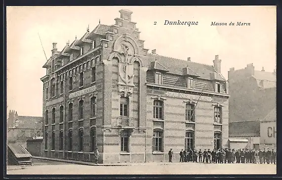 AK Dunkerque, Maison du Marin avec groupe de personnes devant le bâtiment