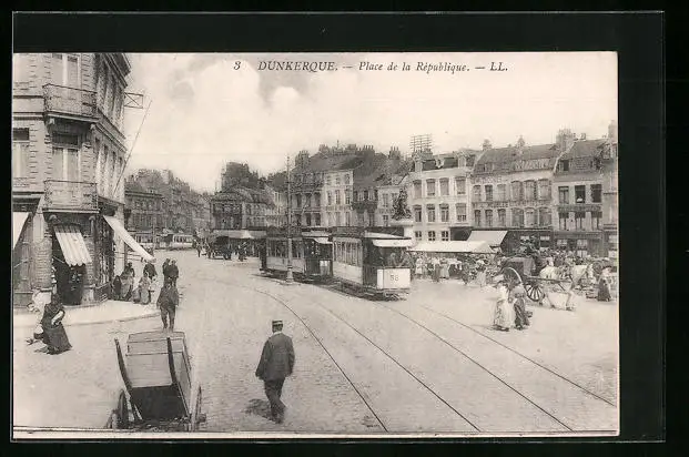 AK Dunkerque, Place de la République, Strassenbahn