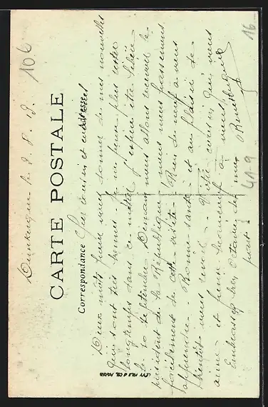 Personenbezogene Daten auf der Rückseite der Karte wurden durch blauen Textmarker unkenntlich gemacht. Die blauen Stellen sind auf die Vorderseite durchgeweicht und wirken sich negativ auf das Postkartenfoto aus