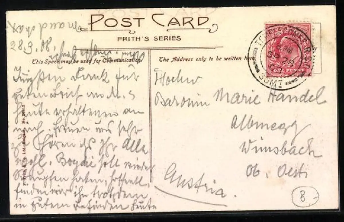 alte Ansichtskarte, gelaufen 1908, Eckknick re. oben, guter Zustand