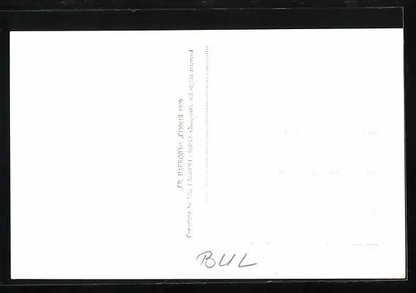 Personenbezogene Daten auf der Rückseite der Karte wurden durch blauen Textmarker unkenntlich gemacht. Die blauen Stellen sind auf die Vorderseite durchgeweicht und wirken sich negativ auf das Postkartenfoto aus