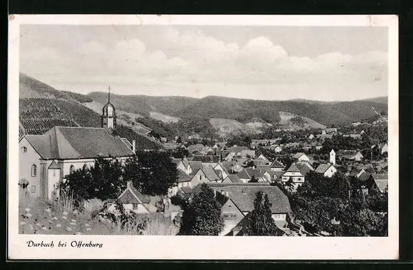AK Durbach bei Offenburg, Teilansicht aus der Vogelschau