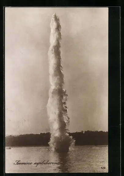 AK Durch eine explodierte Seemine entstandene Wasserfontäne