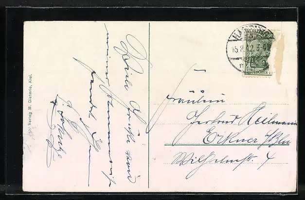 alte Ansichtskarte, gelaufen 1912, Briefmarke entfernt, rückseitig Oberflächenschaden, guter Zustand
