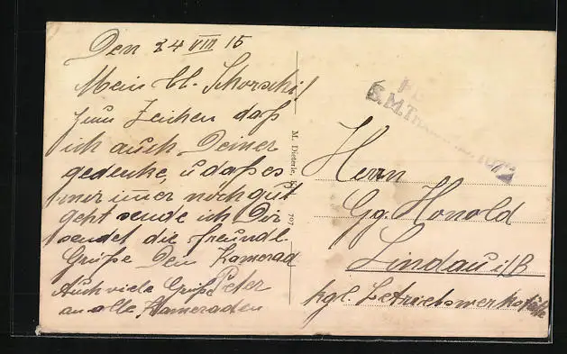 alte Ansichtskarte, gelaufen als Feldpost, guter Zustand