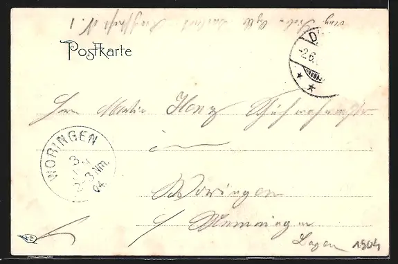 alte Ansichtskarte, gelaufen 1904, Briefmarke entfernt, rückseitig Oberflächenschaden, guter Zustand