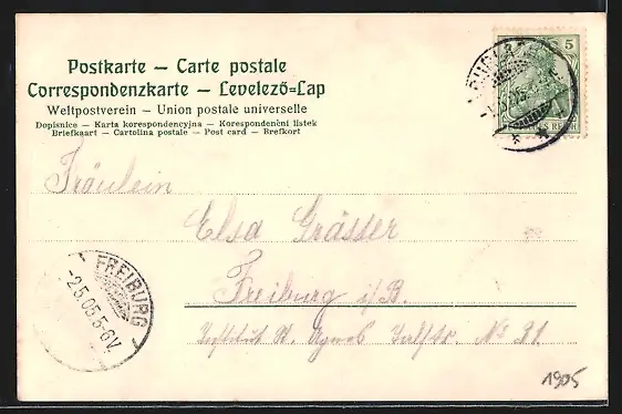 alte Ansichtskarte, gelaufen 1905, guter Zustand