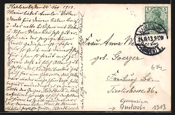 alte Ansichtskarte, gelaufen 1913, guter Zustand